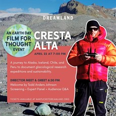 For Earth Day, we are screening an expedition-based climate change film that chronicles a journey to Alaska, Iceland, Chile and Peru to document glaciological research expeditions and sustainability, followed by Q&A with the director and a panel of experts.
