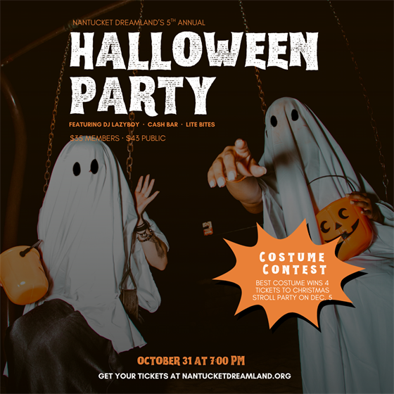 Join us for the fifth annual Dreamland Halloween Party on the second floor of The Dreamland Friday, October 31st from 7-10pm. Nantucket favorite DJ Lazyboy will be performing your favorite Top 40, classic, and holiday-themed hits to dance the night away to!